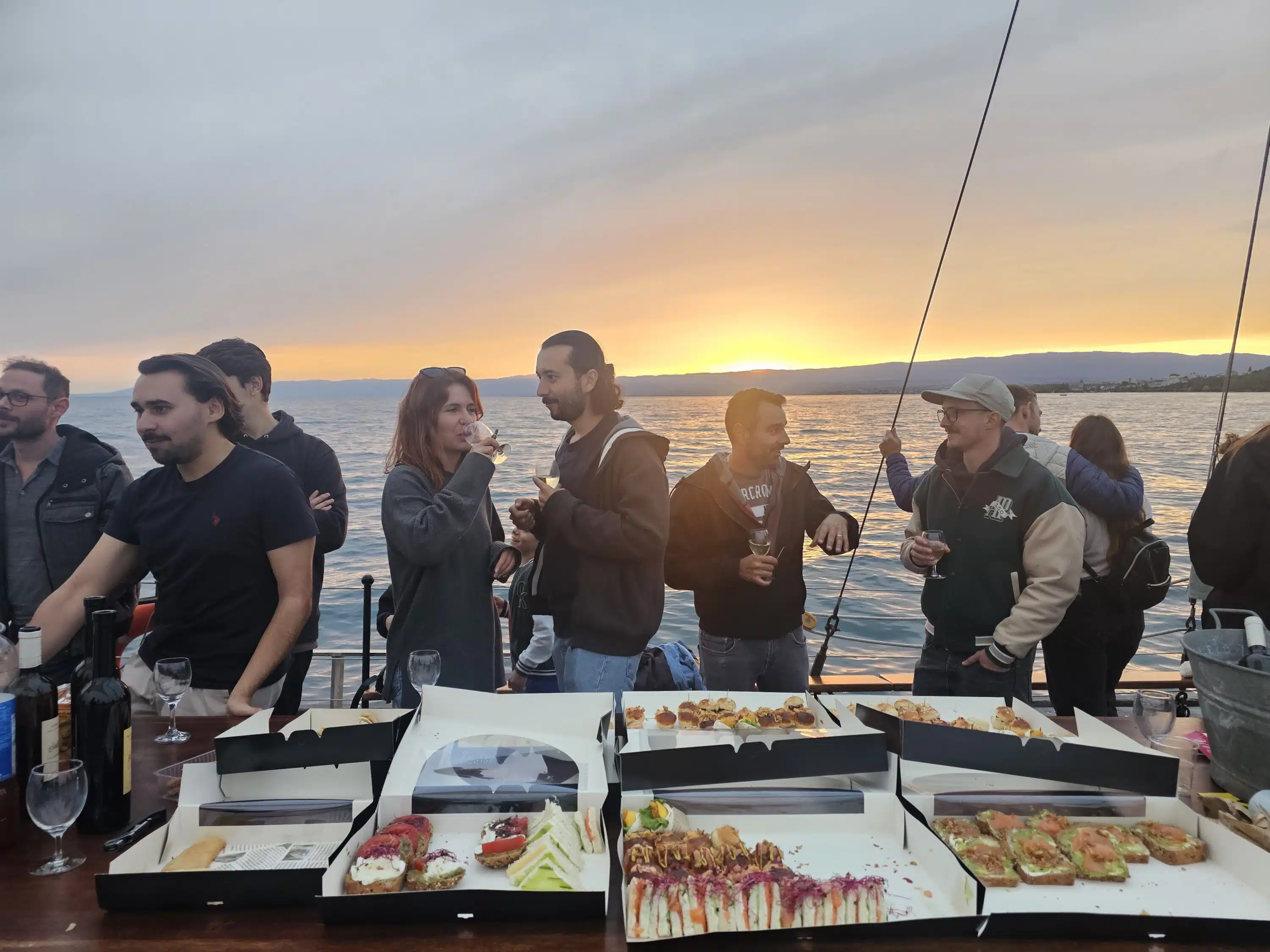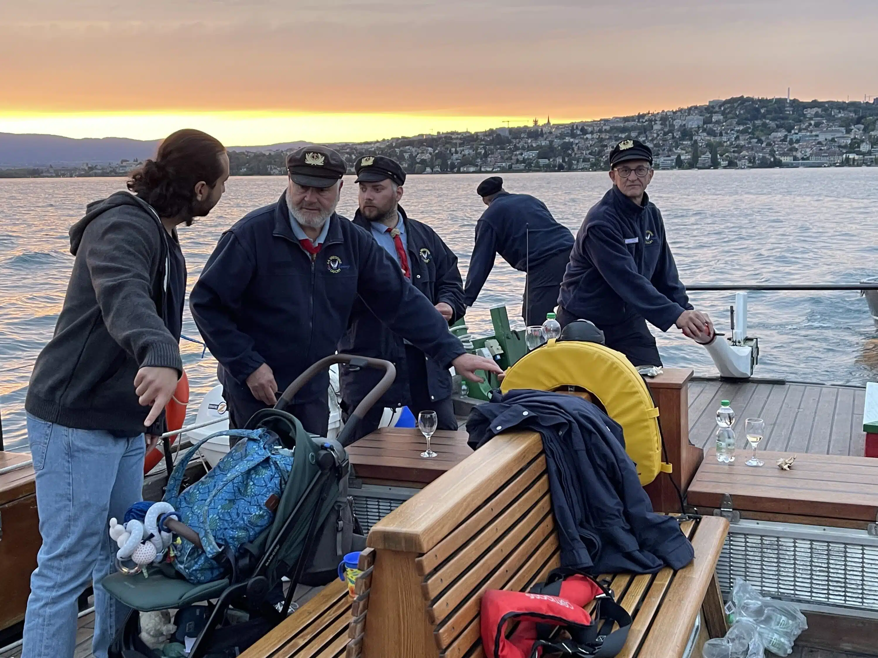 Un atelier cocktails s’en est suivi en milieu d’après-midi, pour se mettre dans l’ambiance avant que les familles ne nous rejoignent au port d’Ouchy, afin que nous embarquions tous ensemble sur la barque mythique « La Vaudoise », pour une virée lacustre jusqu’à la tombée de la nuit. Au programme : DJ, apéritif dînatoire, assez à boire et à manger, et un somptueux coucher de soleil qui a mis « le feu au lac » pour clore cette belle journée.